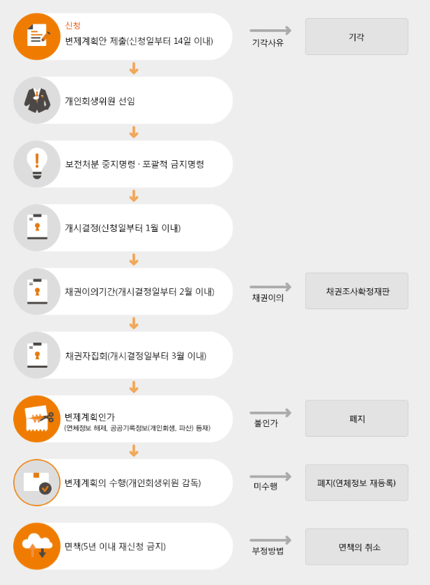 (소요기간은 관할 법원 및 개인회생 회생위원의 서류 검토 소요시간에 따라 다를 수 있음)