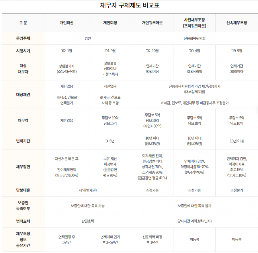 * 개인회생은 신용회복위원회와 협약을 체결하지 않은 금융기관의 채권도 포함 가능합니다.